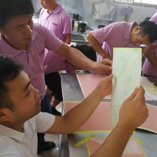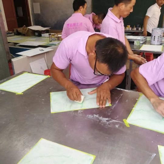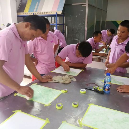 底漆施工、基礎漆施工、刷涂施工、中涂施工、印花擦色、色塊效果等等,逐一講解并演示,并且讓學員現場實操。