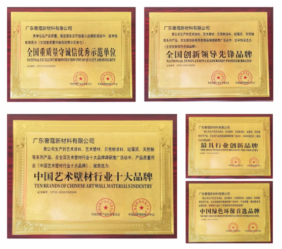對品牌、品質(zhì)、服務(wù)、 責(zé)任的執(zhí)著追求和杰出的市場表現(xiàn)讓源蔻榮獲眾多殊榮:“中國藝術(shù)壁材行業(yè)十大品牌”、“最具行業(yè)創(chuàng)新品牌”、“中國綠色環(huán)保首選品牌”等榮譽稱號。