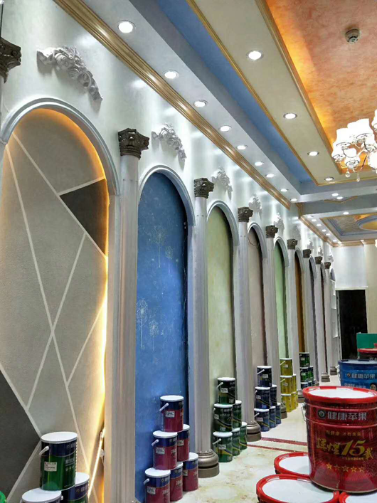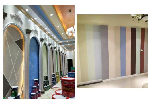 豐富多樣的樣板及實景展現了健康蘋果文化藝術涂料造型繁多、色彩絢麗、紋理優美、施工便捷的特點,給入店的消費者帶來“所見即所得”的形象化感受。