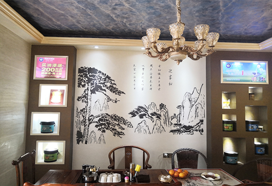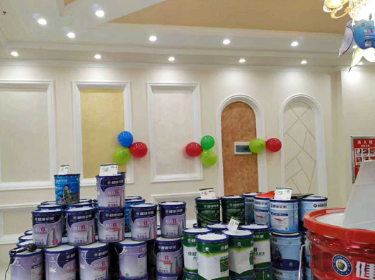 四川內江店裝修大氣、時尚,內部裝修設計、產品陳列展現等各方面都令人耳目一新。內部擺著應有盡有的最火涂料產品,包含內墻涂料、外墻涂料、藝術涂料、防水涂料、質感涂料、裝修輔材等,種類多種多樣,系列齊備。