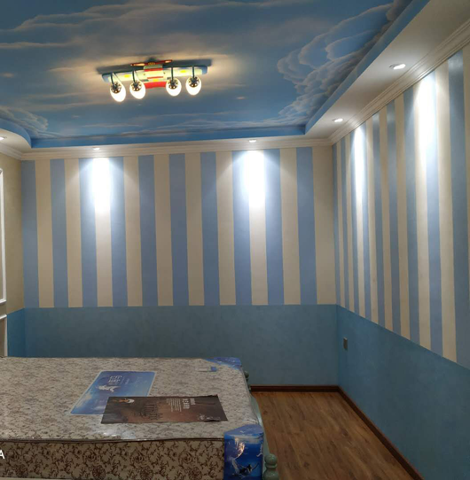 樣板間的墻體全都由健康蘋果文化藝術涂料涂刷而成,展現出了四種風格分別不一樣的特點,沉靜或者活潑、簡潔大方或者雍容華貴,都能夠用藝術涂料呈現出來。
