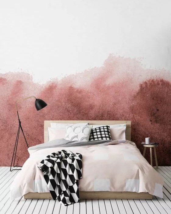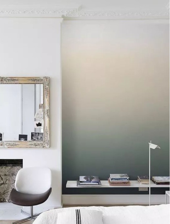無規則的漸變暈染效果,讓墻面變得有藝術感。做漸變暈染時,色彩盡量不要多,這樣才不會讓人眼花繚亂。