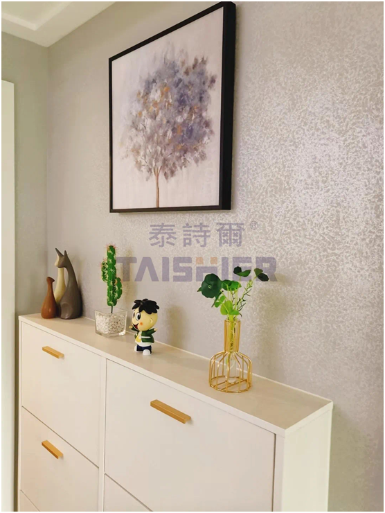 我們生活在一個快節奏的時代,對外部環境無法抵抗的我們,將更多的期望寄托和想象力留在了家這個自由輕松的領地。墻體是舒適家居的重要構成部分,它不應該冰冷堅硬的、呆板的,通過泰詩爾肌理壁膜賦予墻面更多的靈動感,褪去了都市生活的緊張與嚴肅,多彩藝術點綴生活詩意。
