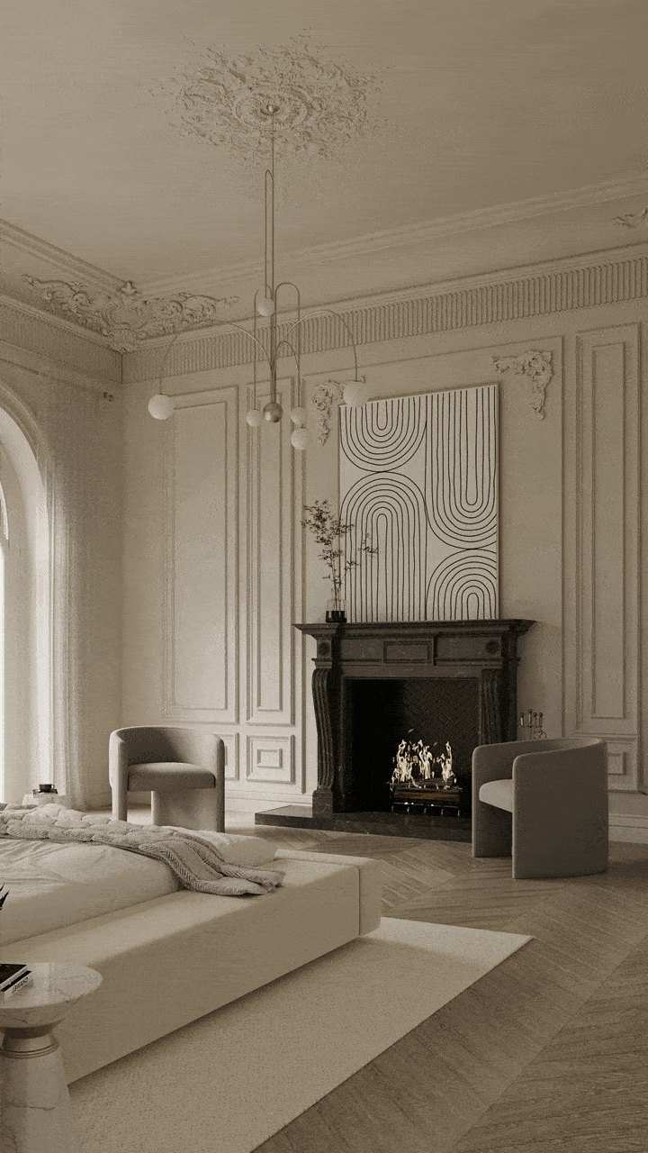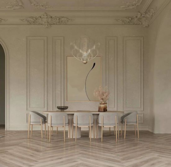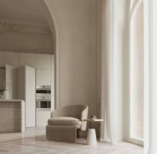 Modern Masters藝術涂料細膩的紋理與質感,似浮云層疊暈染,溫柔繾綣,浸潤時光,賦予空間充盈的想象,透過材質本身與藝術的表達,營造空間的意境之美,將法式風格的優雅與浪漫展露無遺。
