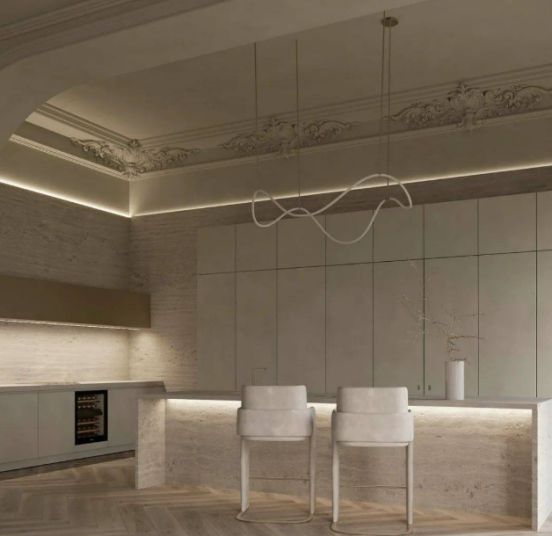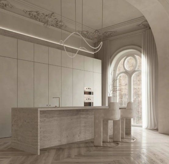 開放式廚房的設計,線條簡潔明朗,一半是煙火氣,一半是儀式感,一如法式風格優雅又不失品質的態度,打造低調、舒適,卻無損高貴與雅致的生活。
