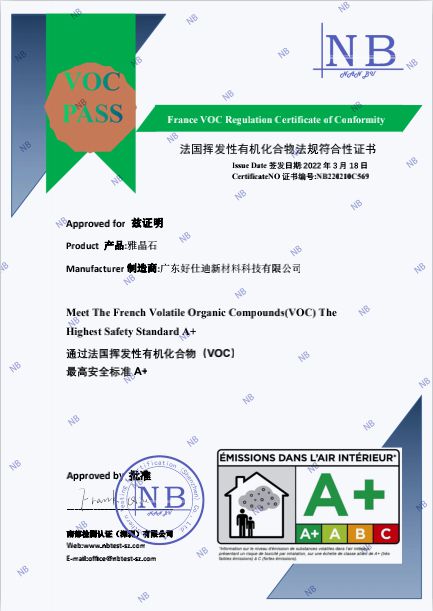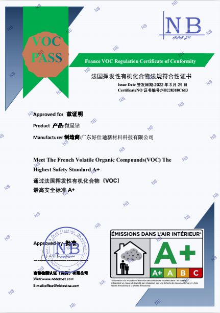 好仕迪以綠色環保為導向,以質量管理為基礎,以精細化服務為原則,所有產品采用水性環保材料,達到GB18582-2020國家標準,環保凈味、安全無毒,嚴密監控生產流程,嚴格控制涂料的質量,產品通過法國A+認證、SGS認證等。