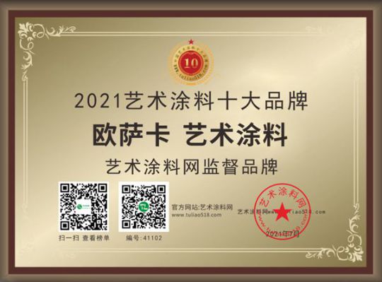 實(shí)力就是底氣,榮譽(yù)就是動(dòng)力!OSAKA歐薩卡藝術(shù)涂料定將不斷開拓創(chuàng)新,砥礪前行,為消費(fèi)者打造更舒適、更時(shí)尚的家居空間,為涂料行業(yè)的健康發(fā)展,貢獻(xiàn)助力!