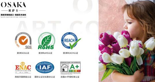 A+是法國(guó)VOC標(biāo)簽中環(huán)保等級(jí)zui高的標(biāo)志。標(biāo)志著OSAKA藝術(shù)涂料在綠色環(huán)保安全品質(zhì)方面,再次獲得國(guó)際權(quán)威機(jī)構(gòu)的認(rèn)可。