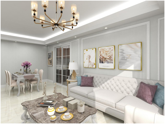 以客廳為例,涂布斯貝殼砂無限連紋的自然延伸構建出連貫整體的空間格調,消除了視覺上的割裂感;與歐式家具的凝合,以最自然的表現手法,成就了空間的奢華內涵。