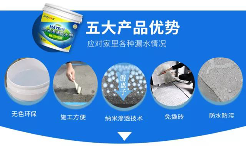美涂士納米滲透防水劑,專業解決各種滲漏問題,對外墻瓷磚,廚房外墻細縫瓷磚,浴室瓷磚表面細縫,陽臺瓷磚表面,混凝土表面,甚至馬賽克、石膏、大理石致密表面,均能起到持久良好的防水、防潮、防霉效果。