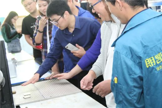 在國購集團(tuán)采購部王培芹、設(shè)計部黃光亮、成本部任金濤帶領(lǐng)下,國購集團(tuán)一行十余人先后參觀了朗凱奇生產(chǎn)基地產(chǎn)成品車間、科研中心實驗室、博物館、行政辦公總部等。
