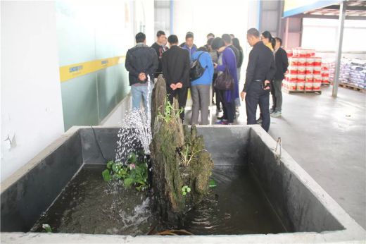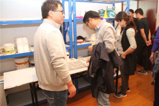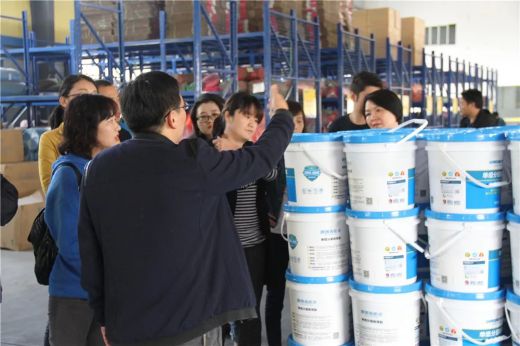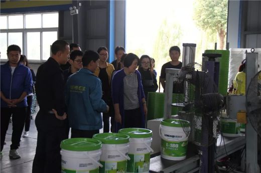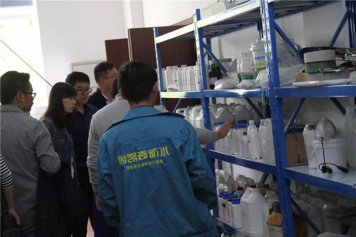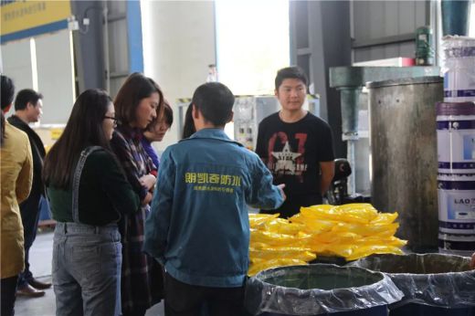 △參觀成品車間朗凱奇生產(chǎn)部負(fù)責(zé)人孫杰首先對朗凱奇各類防水產(chǎn)品進(jìn)行了詳細(xì)介紹,隨后大家來到生產(chǎn)車間,先進(jìn)的自動化粉料、乳液生產(chǎn)設(shè)備讓大家不斷駐足稱贊。