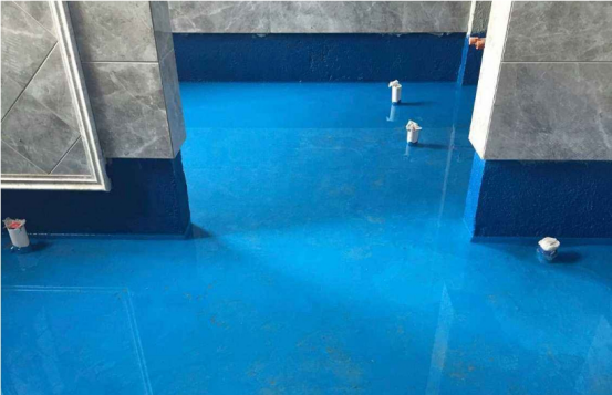 4、搭配:滲透型打底+覆膜型上面,兩者共用,粘結力更好。也就是說地面柔性防水上返10-30cm,地面柔性防水搭接在墻面剛性防水上。