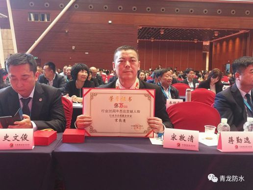 同時,宋董事長還榮獲“行業杰出成就企業家”獎,公司反應粘結型高分子自粘膠膜復合防水卷材榮獲“2019年全國建設行業科技成果推廣項目”證書,凸顯了青龍的實力和影響力。