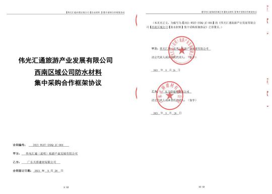 筑龍防水自創建伊始,便以科技為企業發展的核心動力,不斷探索、不斷鉆研,力求將防水做的更透徹,恪守品控好每一件產品,傾力注入到每一個項目,履行“讓建筑不再滲漏”的赤子之心。本次與偉光匯通旅游產業發展有限公司的合作,不僅是同為20余年老牌企業間的理念共鳴,更是對筑龍產品的信賴和對筑龍匠心文化的高度認同。