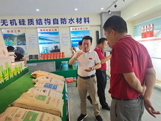 董事長(zhǎng)劉少東向大家介紹了公司專利產(chǎn)品——FDS無機(jī)硅質(zhì)結(jié)構(gòu)自防水產(chǎn)品、FDS氟碳環(huán)氧防水防腐涂料及公司新一代防水產(chǎn)品的性能和基本用途。帶領(lǐng)大家參觀了產(chǎn)品樣板間,直觀了解產(chǎn)品的作用及適用范圍。
