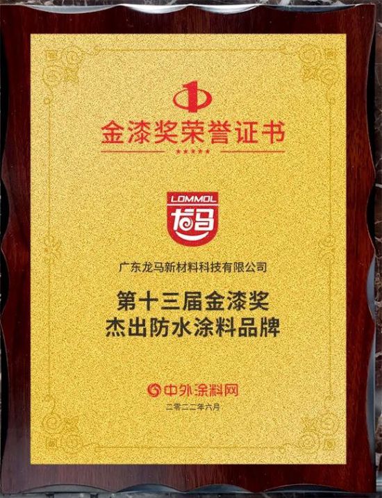 金漆獎由中國涂料行業頭部專業媒體中外涂料網作為中國涂料行業頗具影響力的品牌評選活動,自2009年舉行第一屆“評選活動”至今已是第十三屆,秉承“公平、公正、公開、全面”的原則和“嚴謹、中立、客觀”的態度,每年評選行業優秀品牌,持續助力中國涂料產業的繁榮與發展。作為“防水特長生”龍馬實力出圈斬獲“第十三屆金漆獎杰出防水涂料品牌”獎項