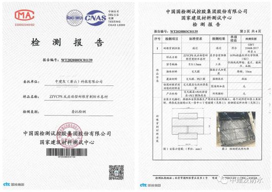 熱烈祝賀:中建友防水公司的ZJYCPS反應(yīng)粘結(jié)型耐根穿刺防水卷材,順利通過中國國檢測(cè)試控股集團(tuán)股份有限公司國家建筑材料測(cè)試中心的耐根穿刺檢測(cè)。