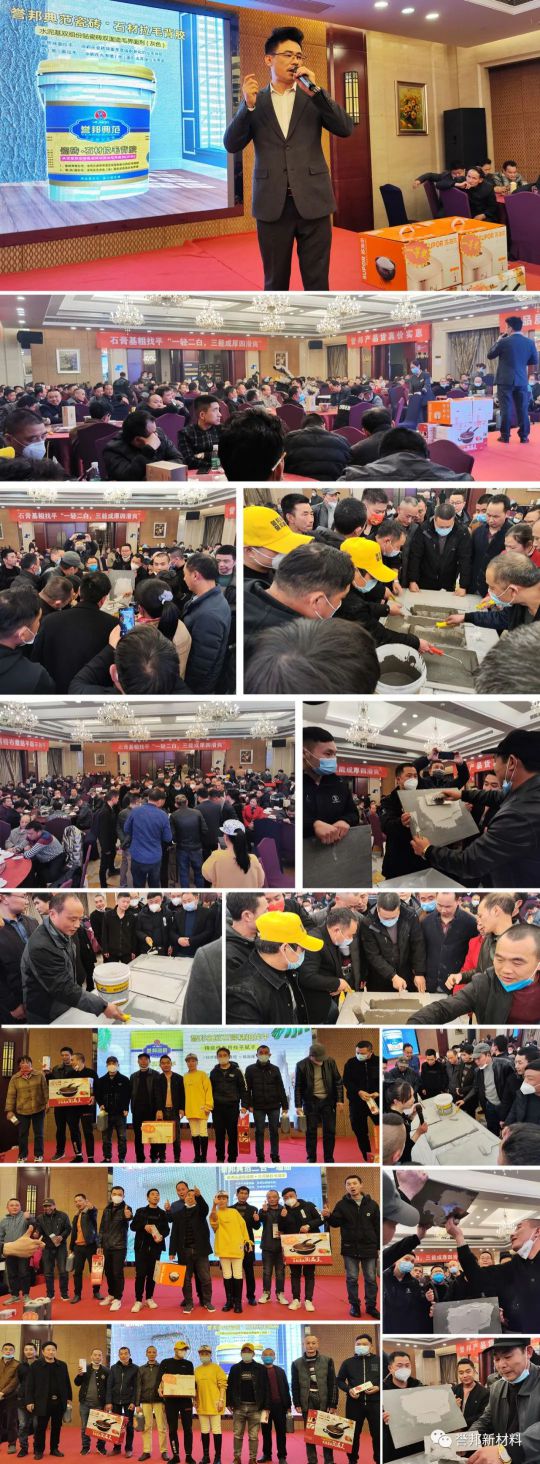 湖南譽邦佘總介紹了本次活動的目的意義,一方面是普及行業(yè)靠譜產(chǎn)品,助力行業(yè)名匠應(yīng)用。另一方面是知識共享,攜手共進,加強彼此的合作交流,踐行譽邦共生平臺的理念。他深入淺出、旁征博引,妙趣橫生的為大家介紹了譽邦產(chǎn)品的差異化特點,功能定位及應(yīng)用等知識。除了再次普及在常德市場已經(jīng)流行的3011網(wǎng)格布等輔料產(chǎn)品外,重點介紹了代表未來背膠趨勢的“水泥基雙組份瓷磚拉毛背膠”,深深打動了在座各位工匠師傅們。并針對這些產(chǎn)品組織了別開生面的現(xiàn)場產(chǎn)品實操體驗和抽獎互動活動,將此次會議推向又一個高潮。
