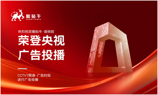 2023年,“中國建筑裝修輔料品牌”瞻貼牛榮耀登上中國中央電視臺,并于央視CCTV-7軍事頻道的黃金時間播放品牌廣告片,向全國人民乃至全世界范圍內的受眾展示品牌新形象、產品新風采!