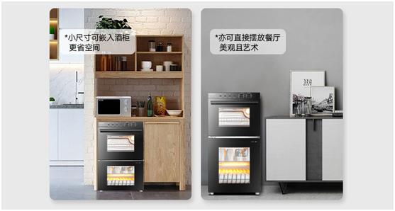 在符合藝術審美及實用價值的設計下,“創爾特烤箱、消毒柜一體機”簡約美觀更百搭,既能以“嵌入式”形式融入廚房,又能以“立式”狀態直接擺放在餐廳,大為彰顯時尚家居氣派。