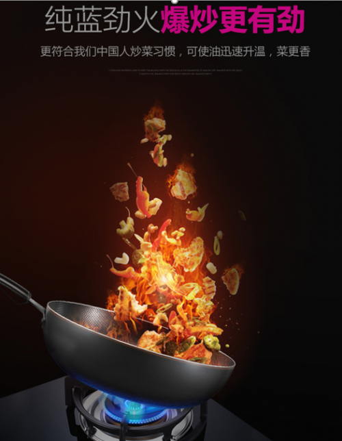 燃燒器:精工鍛壓全銅火蓋,爆炒給力,采用3D火焰及獨特的“穩焰槽”結構設計,能夠保護燃燒器使用壽命防止燃燒器在熱脹冷縮情況下的損壞和控制火焰充分燃燒,溫度極速提升,爆炒瞬間,香氣四溢。