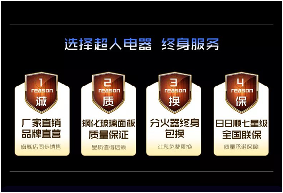 選擇超人電器,售后無(wú)憂。鋼化玻璃面板質(zhì)量保證,分火器終生免費(fèi)更換,日日順七星級(jí)全國(guó)聯(lián)保,還有什么不放心的?