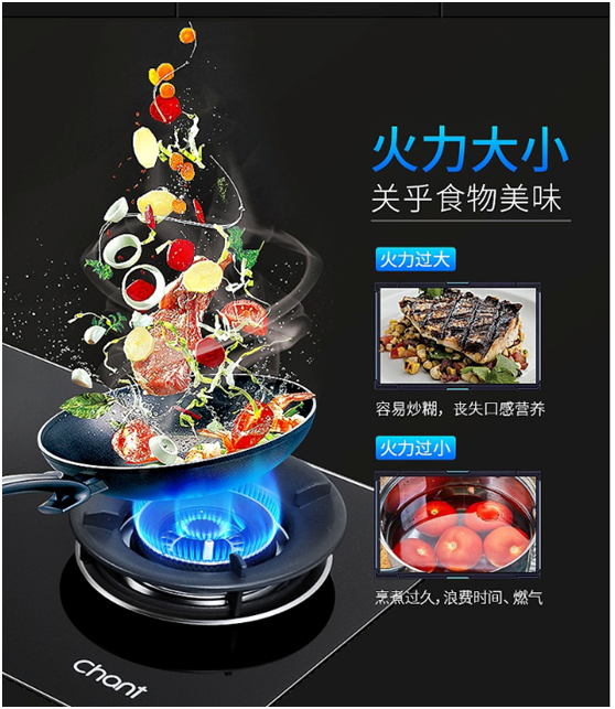 何為火候?火候是烹飪技術中的關鍵,需要根據口感與味道對火力進行大小的控制與對時長的把握。火力的大小直接影響著食物口感,火力過大,會令菜品變糊,讓鍋底變黑;火力過小,不僅需要更多燃氣,菜品難以達到最佳口感。因此,適中的火力才更能滿足中餐煎、炒、煮、炸的多種需求!