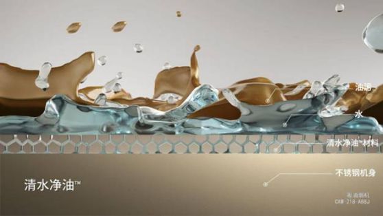 探討其原理,是“清水凈油”技術能使煙機鋼板表面有著極強親水性,水可輕輕松松滲透到油污與鋼板表面中間,令油污浮起,所以水擦洗就可清除油膩,讓繁雜的抽油煙機清洗,馬上顯得跟“卸妝”一樣輕輕松松簡單。