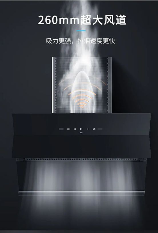 260mm超大風(fēng)道更是讓油煙機(jī)吸力更強(qiáng)