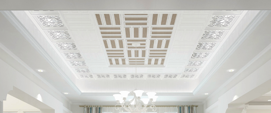 白天與黑夜如何區分?臥室與客廳怎樣更貼近自然?品格高端全屋頂透過產品,向每一位觀眾完美詮釋“一屋一空間”的生活理念。適用于餐廳空間的疏影吊頂,將鏡面和格柵結合,搭配雪弗板雕刻工藝,若隱若現,光影相間,美感由內而外自然流露,營造出靜謐安詳的雅致情懷。適用于廚房空間的芳華系列,采用絲印描金技藝,綠意和明黃的收邊點綴,讓清新、盎然的意境躍然于頂上,一個知性靈動的藝術空間孑然而生。