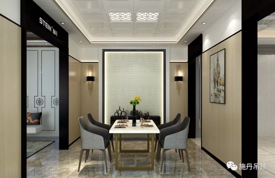 精心打造的飯廳樣板方案,是施丹吊頂這次顏值升級的秘密武器。既能輕松鎮住樣板間的顏值,又為業主打造了一個可實現的“設計系統”。