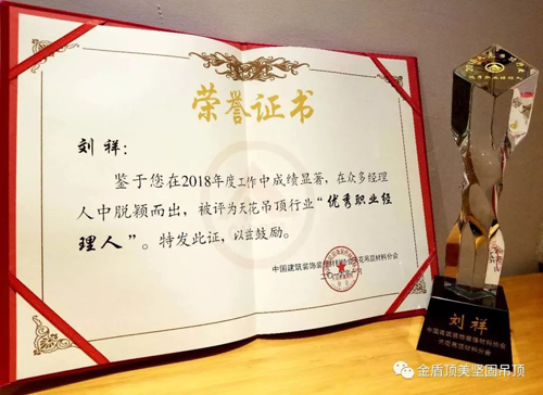 品牌創始人劉祥先生榮獲行業【優秀職責經理人】稱號