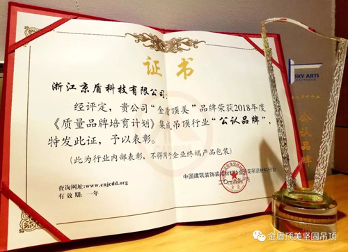 金盾頂美榮獲2018年度【質量品牌培育計劃】集成吊頂行業【十大公認品牌】