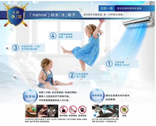 空調十大品牌松下的HEN系列攜載的nanoe納米水離子是自然界中由水形成的一種新型微粒離子,具有與人體皮膚相似的弱酸性。當用戶使用它時,空調只需打開一個鍵就可以通過發電機向室內釋放大量的納米水離子。然而,這些納米水離子會吸附灰塵、浮游細菌、粘附細菌和其他漂浮在空氣中的有害物質,并滲透到窗簾、沙發、布料等纖維的深處,同時抑制家中細菌的生長,從而促使室內空氣良好有效的循環。