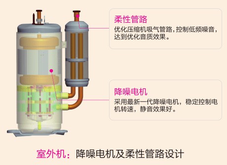 格力雅居外機采用降噪電機及柔性管路,內機選用專利高效降噪蝸殼、風葉,對噪音源處進行控制優化,達到了更高的靜音要求。