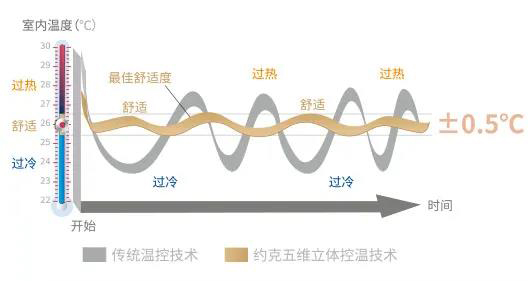 有溫度的人相處舒心,有溫度的家居住也更舒適。約克中央空調對室內溫濕度的控制能力也十分卓越,五維立體控溫技術通過5個不同的傳感器多方控制室內溫度,溫差波動不超過±0.5°C,智爽除濕和強勁除濕兩種模式時刻保持家居的清爽環境,讓家更宜居。
