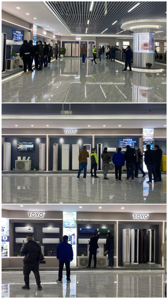 奮斗正當時,攜手書未來。中午,來自廣東的客人們在TOYO空調事業部制造總監李良斌的帶領下,前往參觀TOYO東洋空調智能工廠和二期一樓展廳。