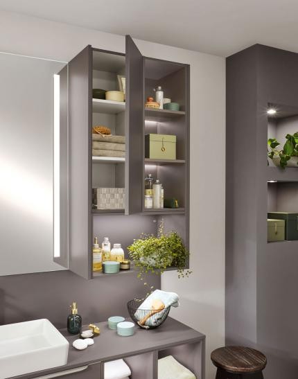 德國柏麗浴室柜的懸掛系統、盆位和存放位置的布局是根據使用習慣和人體力學定制設計的。在儲物方面,多種儲物形式交錯組合,在保留設計感的同時充分利用空間,在實現高效儲物的同時,實現感官有序。