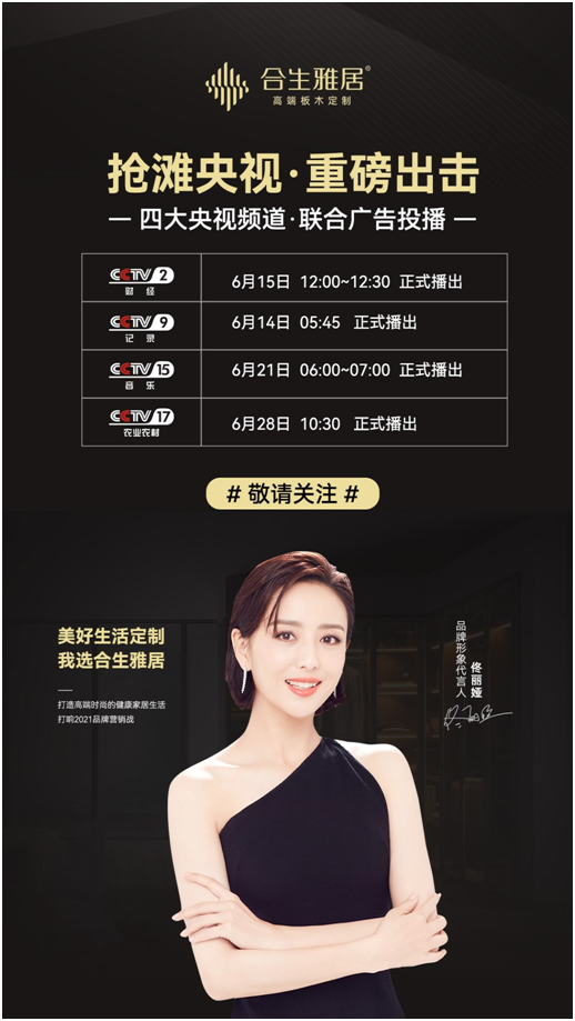 百舸爭流,奮楫者先,熱烈祝賀合生雅居榮登CCTV央視頻道,強勢拉開品牌建設的新篇章。在2021年6月中旬開始,一支承載著合生雅居品牌使命的廣告片將會在CCTV-2、CCTV-9、CCTV-15、CCTV-17四大央視頻道進行多欄目、高頻次的宣傳展播。