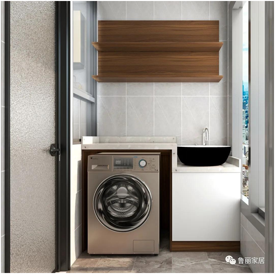 陽臺的有效利用可以為家庭解決許多煩惱。洗手臺下做收納柜,既可以將排水管隱藏,又可以收納日常雜物。洗衣機嵌入臺面,有效利用上方空間設置置物臺,將空間完美劃分。在這里擺上你喜歡的花草,也是你休閑放松的好去處。