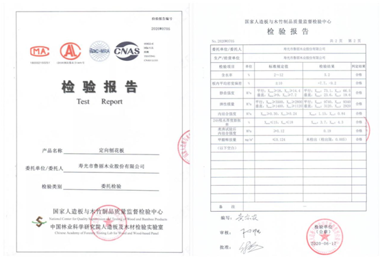 優(yōu)質(zhì)基材+MDI生態(tài)膠黏劑助力魯麗家居產(chǎn)品實現(xiàn)零甲醛添加,經(jīng)國家人造板與木竹制品質(zhì)量監(jiān)督檢驗中心檢測,未檢出甲醛釋放,魯麗無醛OSB板甲醛釋放量≤0.005mg/m3。