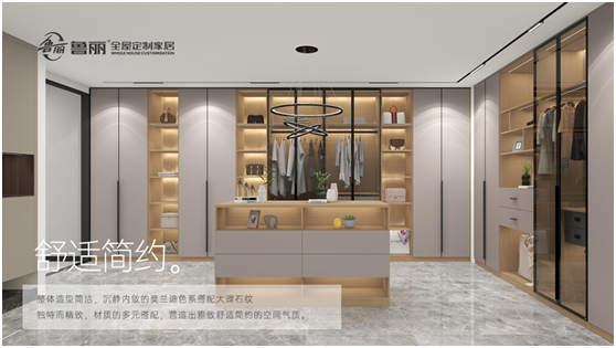 素凈淡雅的原木材質、富有肌理感的大理石、線條利落的金屬材質,選用這些簡單而富有質感的材質運用于全屋定制中,不僅可以提升空間的氣質,給人帶來眼前一亮的視覺效果,更能提升居住體驗感。以魯麗木業的板材定制而成的衣柜為例,其以原木色為基調,保持了木的自然與本真,不嗜繁雜,讓人在歸家時回歸心靈的寧靜。