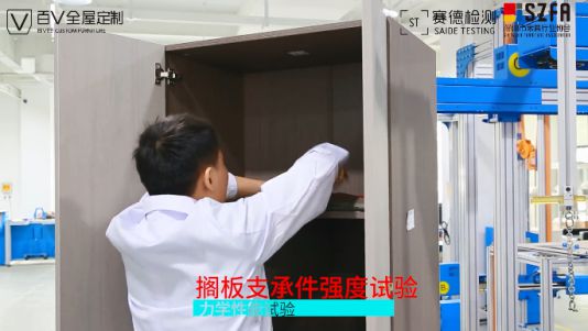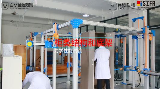 為讓消費者直觀查實產品質檢真實性,百V全屋定制通過公示產品檢測視頻方式,不懼消費者質疑,敢于引領行業服務新方向;視頻囊括墻板、柜體、門板等支撐強度測試,板材甲醛含量檢測,拉門耐久性測試等。