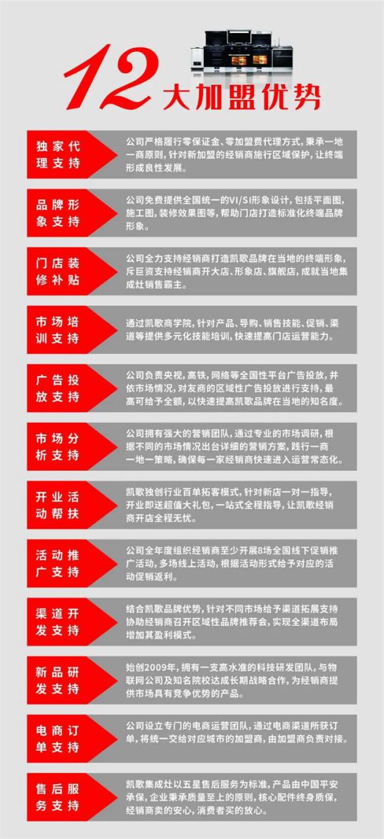 王總表示,凱歌集成灶擁有完善的終端運(yùn)營體系,將實(shí)施精準(zhǔn)區(qū)域宣傳推廣、營銷后臺精細(xì)化管理、終端精細(xì)化運(yùn)營、渠道拓展、免費(fèi)客戶資源線上線下整合、千萬級精準(zhǔn)投放,多維度全媒體覆蓋,線上線下齊助力等,將對專賣店落成后一路跟蹤,手把手扶持,輕松經(jīng)營,穩(wěn)定贏利!