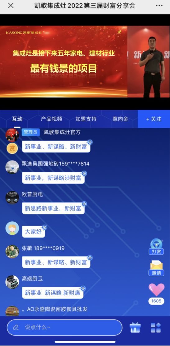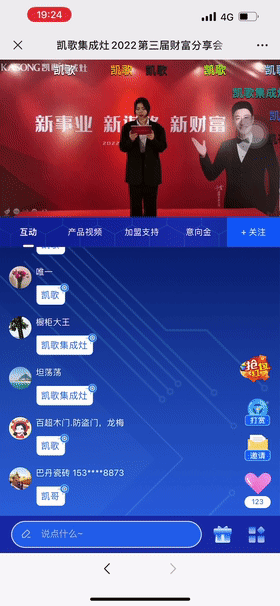 本次招商會(huì),凱歌集成灶給予特別的限時(shí)優(yōu)惠政策,隨著王總宣布完本次招商會(huì)現(xiàn)場政策,直播間各位老板紛紛表達(dá)跟凱歌集成灶的合作意向。