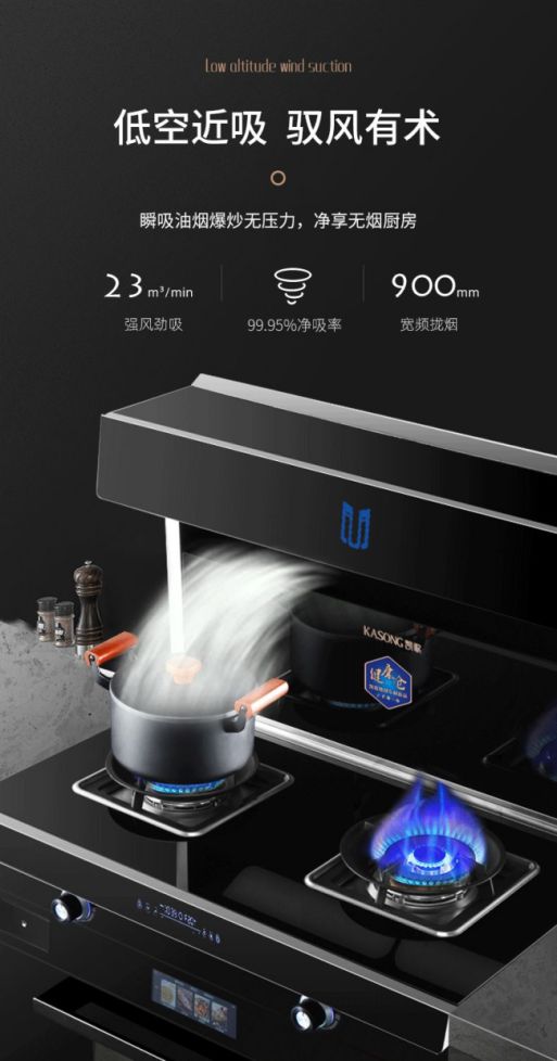 凱歌集成灶吸油煙更徹底,23m3/min大風量、720Pa大風壓,即使爆炒辣椒,也不用擔心油煙太嗆人,無油煙,更靜心,凱歌集成灶讓你過一個清爽的夏季~
