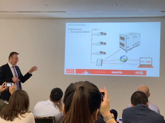 德菲蘭核心經(jīng)銷商22人于2018年12月, 組隊前往德國Dephina太陽神中央新風系統(tǒng)工廠,學習新品AIR1全能中央新風系統(tǒng),Helios