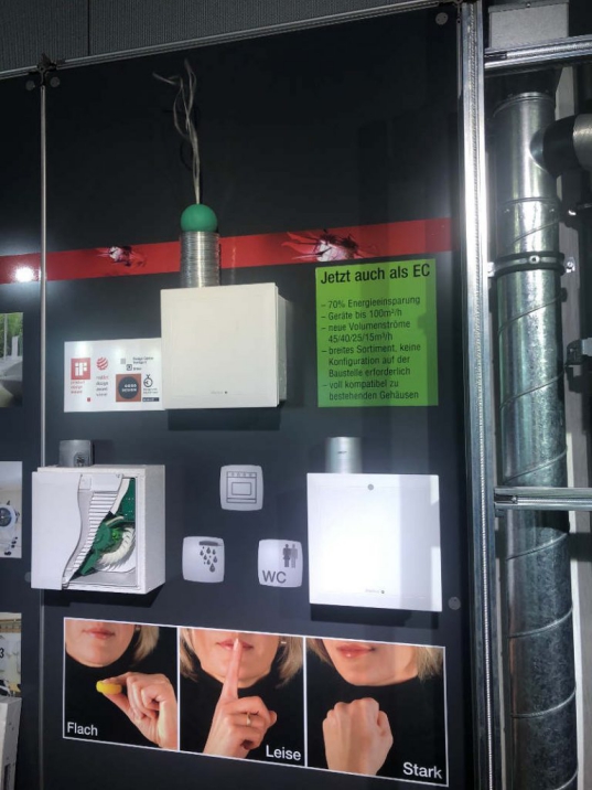 培訓(xùn)期間,學員們仔細研習了新品ELS排風扇,推敲適合中國吊頂結(jié)構(gòu)的訂貨配件。ELS暢銷德國35年,以其UltraSilence特殊的工藝,形成杰出的低噪音和低能耗特點。還有例如延遲和定時功能、自動人體感應(yīng)通風、濕度自動控制,這些功能靈活選配。