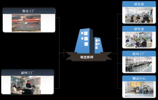 蘇州格蘭斯柯光電科技有限公司實力雄厚,公司擁有21000㎡生產基地,主要包括新風工廠、鈑金工廠、濾網工廠。公司注重研發設計投入,設有產品外觀設計、機構設計、電子設計、軟件設計和研發測試等部門。公司研發團隊擁有多年新風系統設計經驗,累計完成各類新風產品設計100余款,擁有新風系統風道設計、內外循環等相關專利70余項。